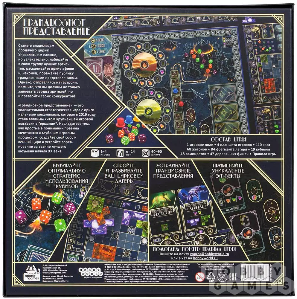 Alvaid03.03.2021 12:26Игра классная. Тут мало рандома, очень красивое оформление, много взаимодействия с игровым полем. Интересно играть и в одиночку, и вдвоём, что для меня очень важно. Однако есть и ряд недостатков: правила не самые легкие, есть немало нюансов и первые пару отыгрышей будете только постигать имеющиеся нюансы. Присутствуют откровенно несбалансированные фишки ассистентов - например, тот, который дает +1 большой лагерь при строительстве, или тот, который убирает 1 требование с афиши при разыгрывании представления. В последнее время мы их просто вынимаем из игры, так как тот, кто получает какую-то из этих фишек, получает настолько большое преимущество, что дальше можно уже и не играть - победитель уже ясен) Тем не менее, сыграли в эту настолку уже больше 10 раз, и всё ещё периодически появляется желание поиграть. Потому рекомендую! И очень надеюсь, что дополнение к этой игре выйдет в России. Безумно хочу его приобрести