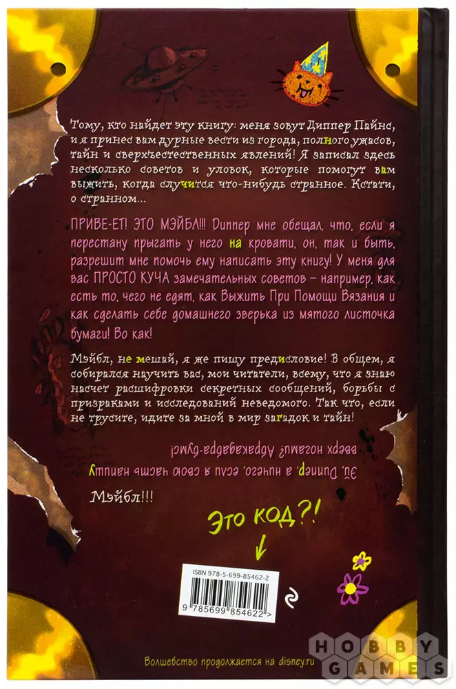 Отправляетесь в Гравити Фолз? Тогда вам будет сложно без этой книги! Ведь в ней изложено всё необходимое, чтобы существовать в этом таинственном месте: укрытия и шифры, монстры и аномалии, способы бороться с ними и способы убегать... Подождите-ка, способ убегать всего один – бежать. Неважно, главное, что этот дневник сильно облегчит жизнь путешественника, забредшего в Гравити Фолз. А кто же автор этого дневника? Наверное, таинственный скиталец, забредший туда каким-то чудом? Вовсе нет! Этот дневник написан двумя близнецами школьного возраста – Диппером и Мэйбл. Диппер развит не по годам и наверняка оставил вам уйму полезных советов, а Мэйбл... Ну, ещё узнаете, не будем лишать вас интриги!