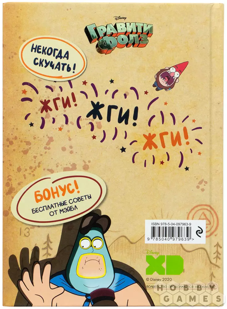 В этой книге вы найдёте целую кучу идей, как провести время весело и немного безумно – в общем, совершенно в духе вашего любимого мультика "Гравити Фолз". Под красочной обложкой вы найдёте фокусы, тесты, уморительные иллюстрации и 25 игр: от логических, которые пришлись бы по нраву Дипперу, до любимых Мэйбл танцев и приколов. Кроме того, в геймбуке можно найти сборник загадок, которые одинаково интересно решать как в компании друзей, так и самостоятельно.