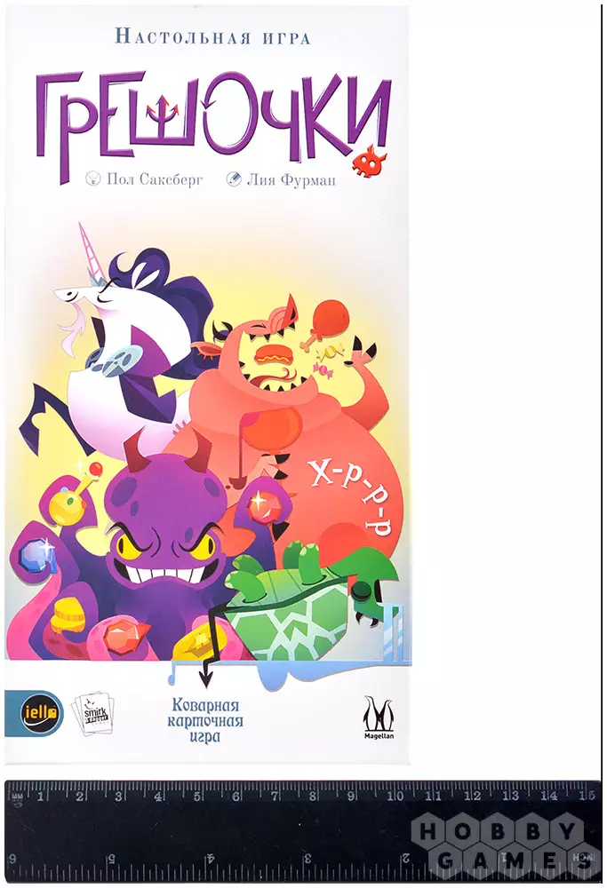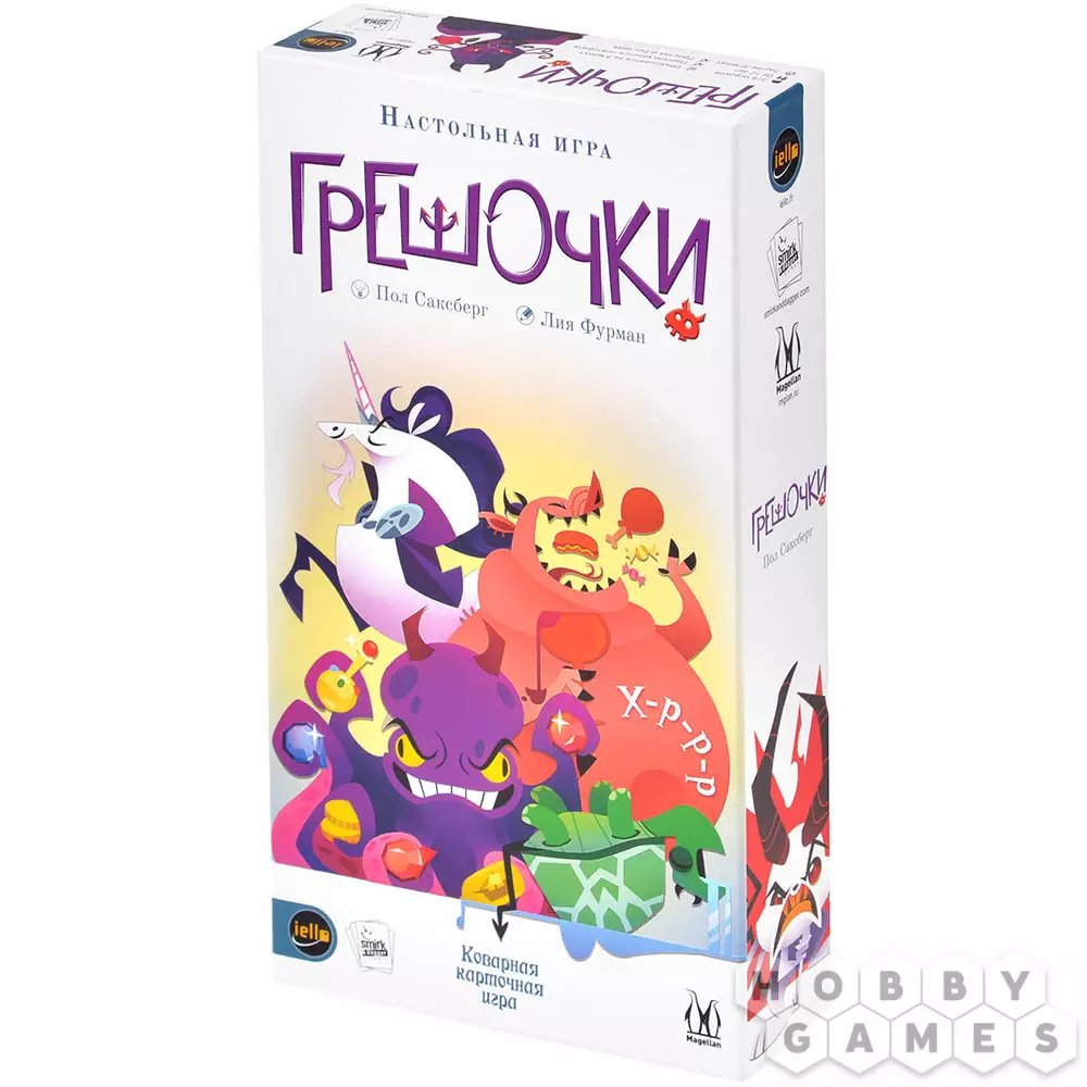 "Грешочки" – это весёлая карточная игра для компании от 3 до 6 человек. А ещё она простая, как пареная репа! В этой игре вам и остальным игрокам нужно как можно скорее избавиться от карт грехов с руки и обнулить свой уровень порока: выкладывайте карту на стол, применяйте её эффект против других игроков, и будьте готовы к тому, что "ответочка" прилетит в любое время.