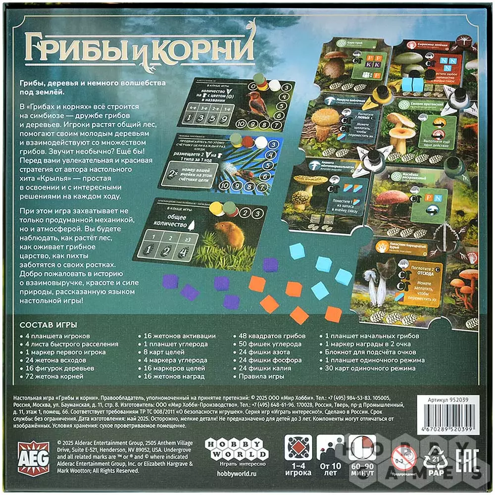 В мире природы царства Грибов и Растений связаны тесной дружбой, называемой симбиозом. Каждый участник этого процесса поддерживает другого, создавая живую гармонию. В этом удивительном союзе грибы помогают деревьям расти и крепнуть, а деревья в ответ заботятся о своих грибных партнёрах. Именно так поддерживается баланс и развивается лес. И именно этот процесс природной взаимовыручки воплощён в данной настольной игре.