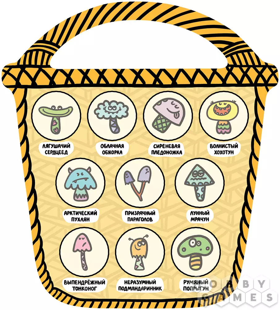 Игра продолжается до тех пор, пока один из собирателей первым не заполнит свою корзинку до краёв, собрав в ней полную коллекцию – все десять разных грибов с глазами!