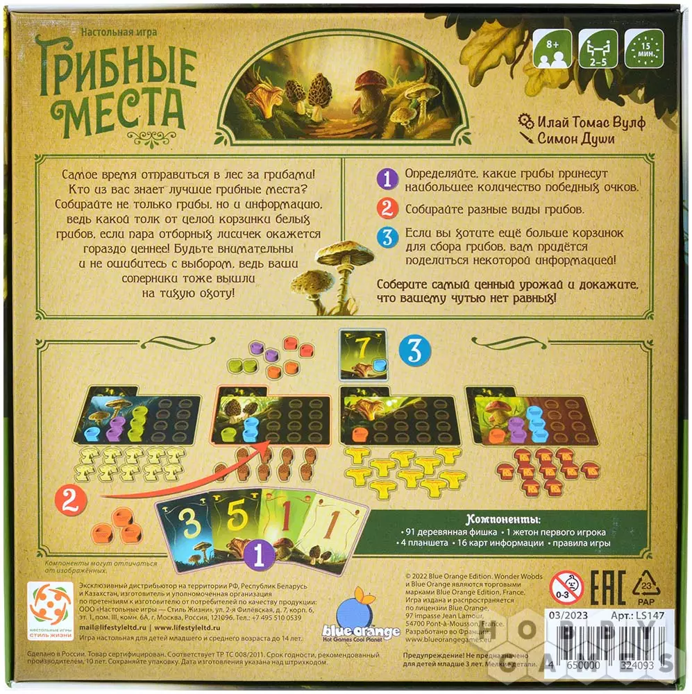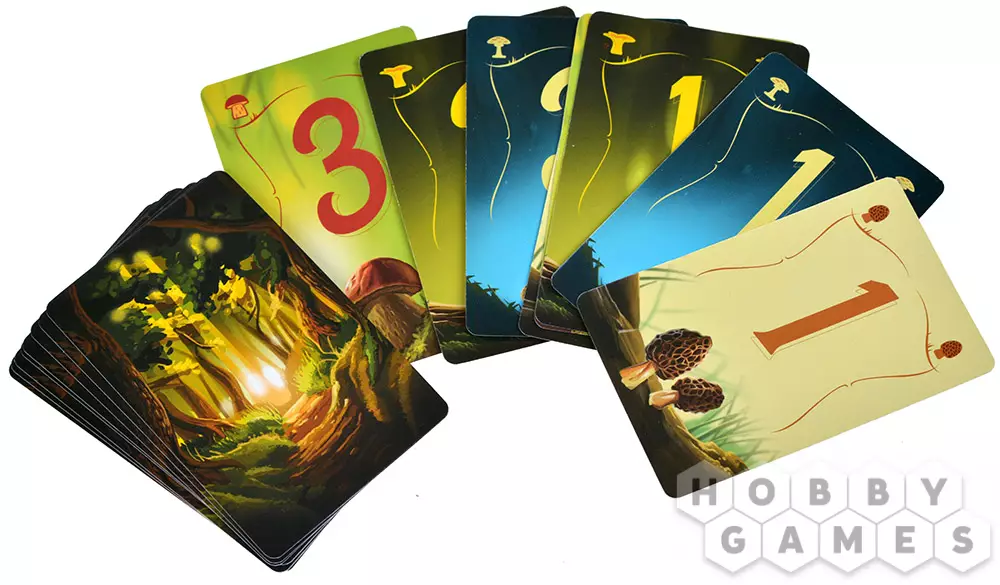 Настольная игра "Грибные места" наполнена яркими красками и азартом! Всего за одну короткую, но увлекательную партию игра проверит вашу интуицию, и способность просчитывать наперёд. Игра длится несколько раундов, в течении которых вам предстоит тесно взаимодействовать с другими игроками, борясь за место на грибных полянах и информацию о том, какой вид грибов будет самым ценным и принесёт больше победных очков. Вначале раунда возьмите карты победных очков, разделите их на 4 стопки по видам грибов, по отдельности перетасуйте и в закрытую уберите 1 случайную карту из каждой колоды под соответствующие планшеты. Остальные карты перемешайте вместе и раздайте игрокам в зависимости от их количества.
