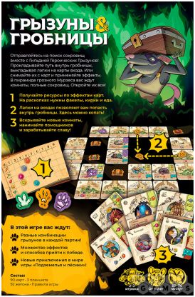 "Грызуны и гробницы" – это динамичная игра, которая перенесёт вас в загадочный мир древних пирамид. Ваша задача – быть быстрее соперников: прокладывать путь вглубь гробницы, активировать эффекты карт и собирать ценные ресурсы. Игра не даст вам заскучать ни на секунду, проверяя вашу смекалку!