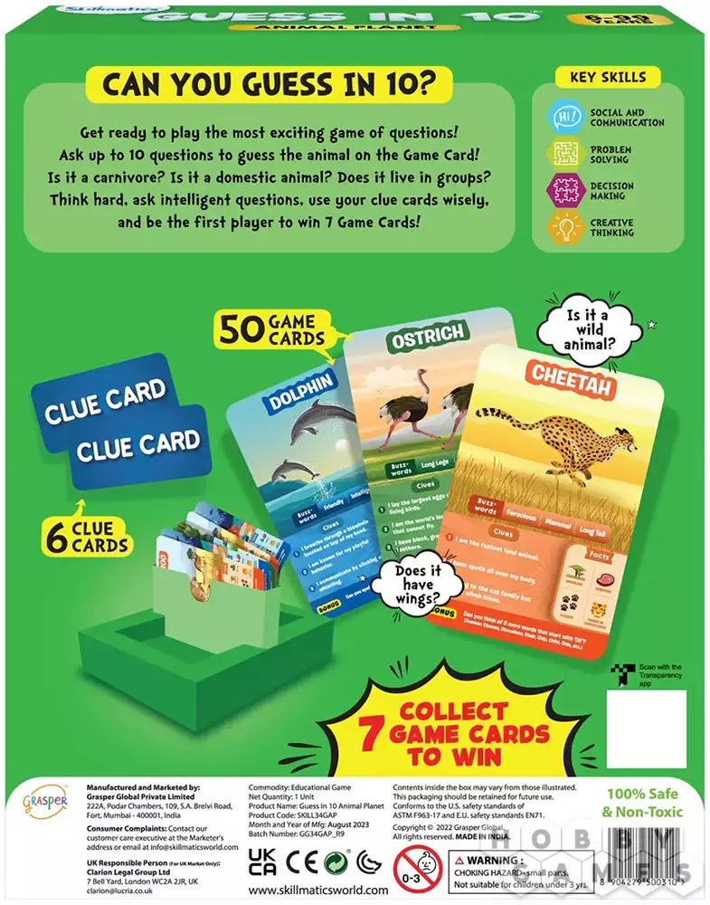 Guess in 10 – это серия увлекательных образовательных игр, способствующая расширению кругозора, развитию аналитического мышления и формированию навыков анализа. Участники, руководствуясь наводящими вопросами, пытаются разгадать, что задано на карточке. Игра наполнена увлекательными фактами и красочными иллюстрациями, что делает процесс игры более захватывающим. Отличный выбор для семейных вечеров или уютных посиделок с друзьями.