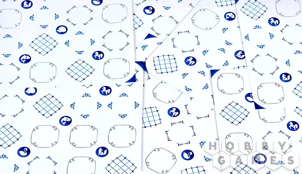 Затем обратите внимание на игровое поле и колоды с картами целей. Ваша задача – разложить снятые жетоны так, чтобы выполнить как можно больше этих целей. Они могут быть связаны с определёнными орнаментами, цветками или комбинациями. Всего в раунде три цели: две связаны с цветками на каждом из планшетов, одна – с орнаментом. В конце раунда цели перемещаются между планшетами, и лишь одна из них обновляется, так что вы можете продумывать свои действия наперёд. Вам необязательно использовать все жетоны цветков. Часть из них можно оставить на следующий ход – тогда они станут штампами.