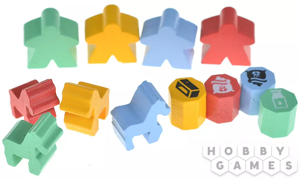 Ослики – важная часть игры. В отличие от рабочих, они могут перемещаться только на один участок за ход, но именно они доставляют ресурсы из одного места в другое. Например, вам нужно выполнить поставку досок, чтобы начать строительство церкви. Ваш рабочий перемещается к лесорубу, чтобы активировать его и получить дерево, но чтобы получить доски, дерево нужно доставить на лесопилку. Переместить сырьё можно на любой соседний участок, а вот чтобы оно пошло дальше, на соседнем участке должен находится ваш ослик. Тогда вы сможете переместить ресурсы ещё раз.