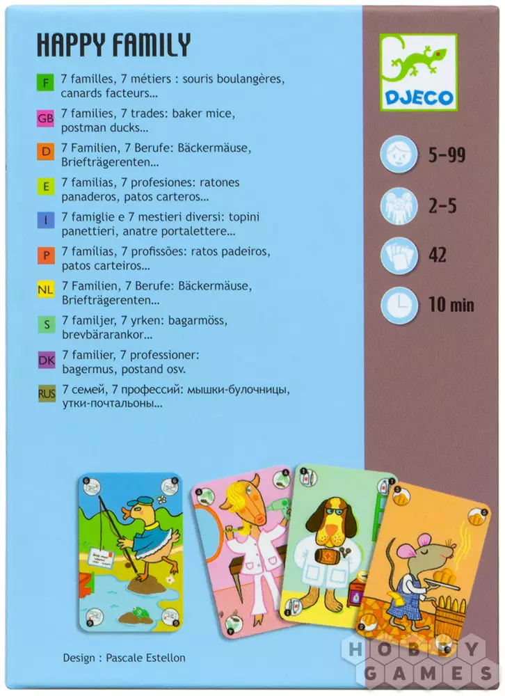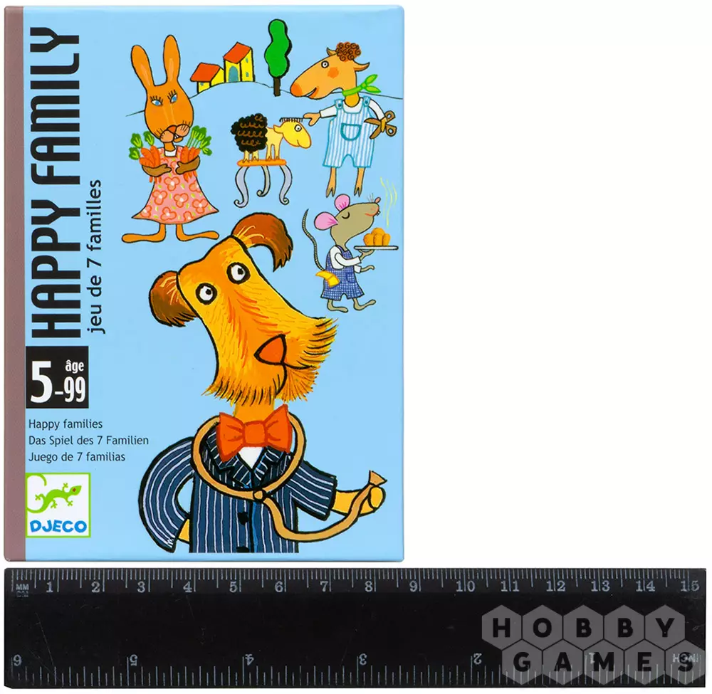 Happy family – детская настольная игра жанра "семь семей". Игровой набор содержит 42 карточки с изображением членов семи семейств. Игрокам предстоит познакомиться с тремя поколениями каждой из этих семей: пекарей, садовников, пожарников, торговцев рыбой, парикмахеров, почтальонов и врачей. Каждому игроку в самом начале раздается по семь карточек, далее участники спрашивают друг у друга недостающих представителей семей. Игра завершается тогда, когда все семейства будут собраны. У кого будет собрано больше всего семей – считается победителей.