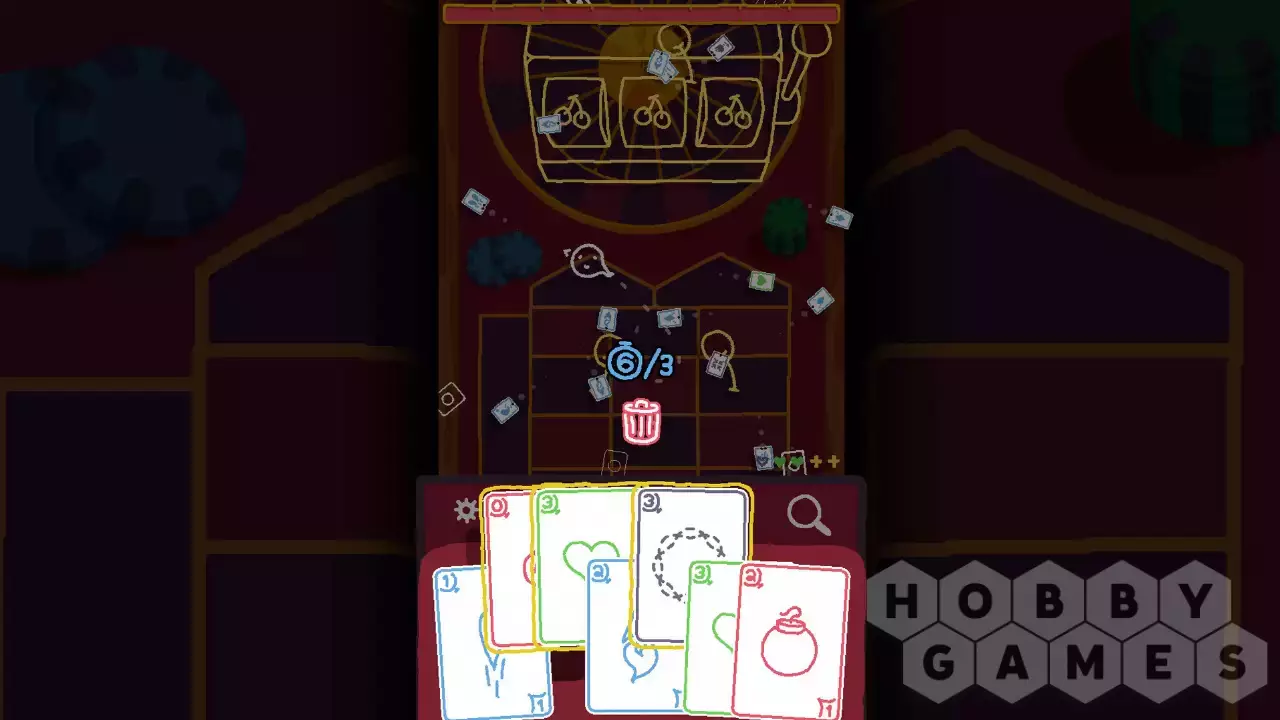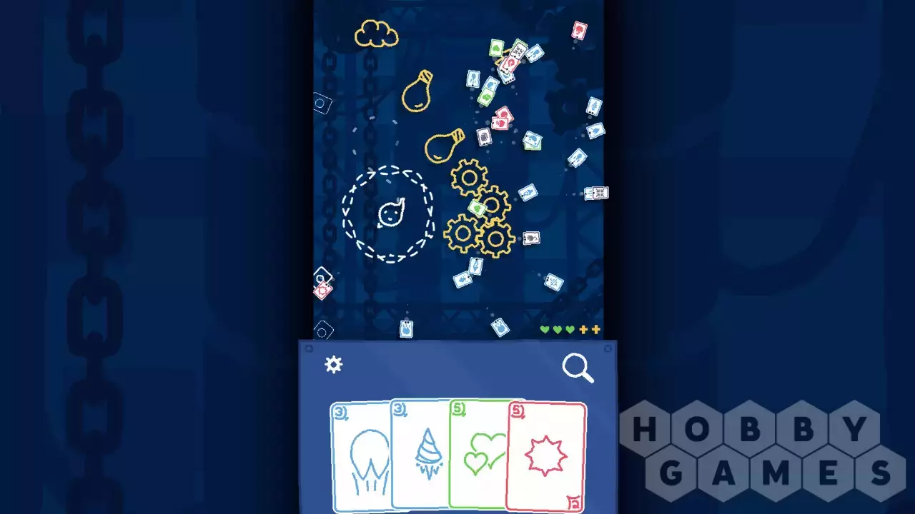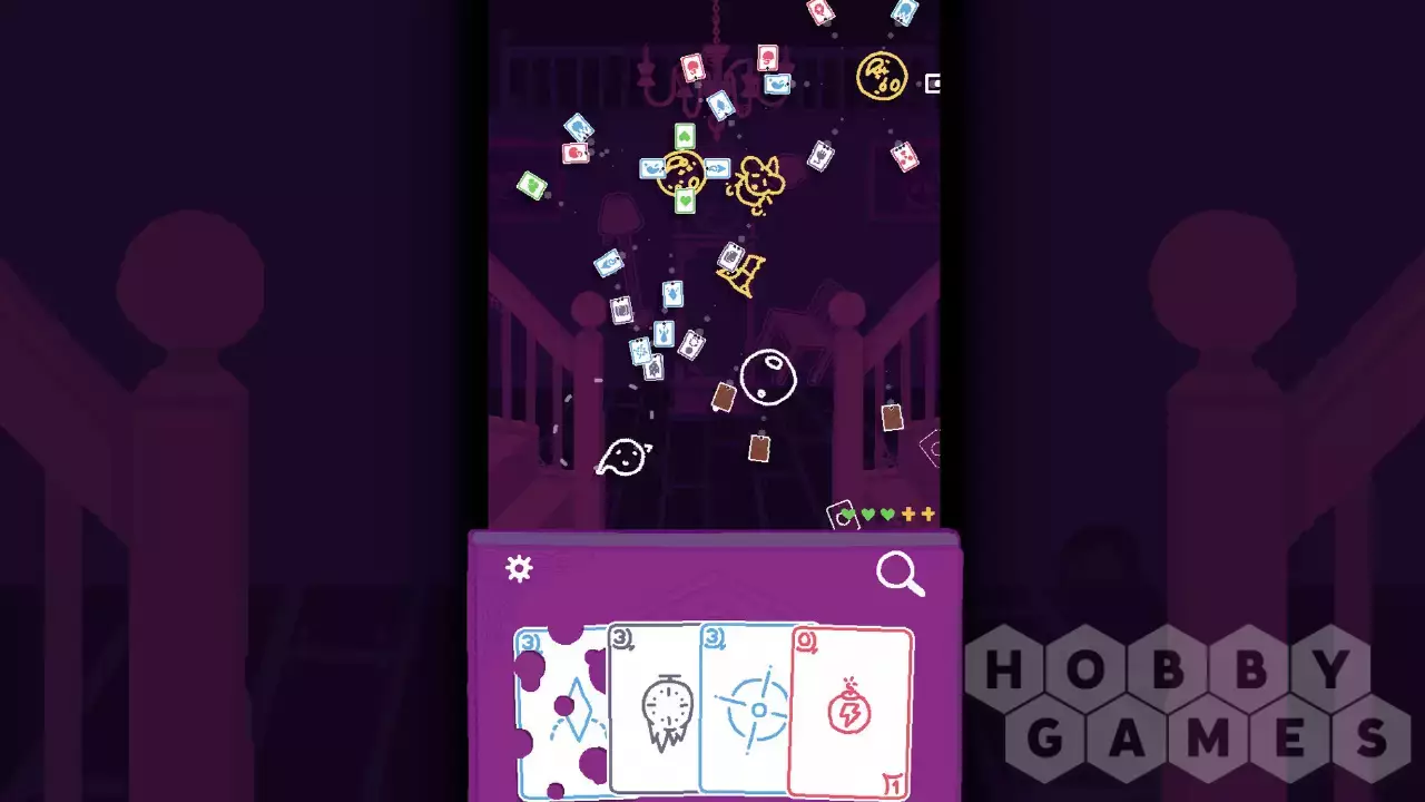 На протяжении 5 этапов вам придется проявлять ловкость и изворотливость, чтобы уворачиваться от пуль-карт, и навыки стратегического мышления, чтобы грамотно использовать карты. Каждая подобранная карта расходует одно очко здоровья, так что не хватайте по пути все подряд.