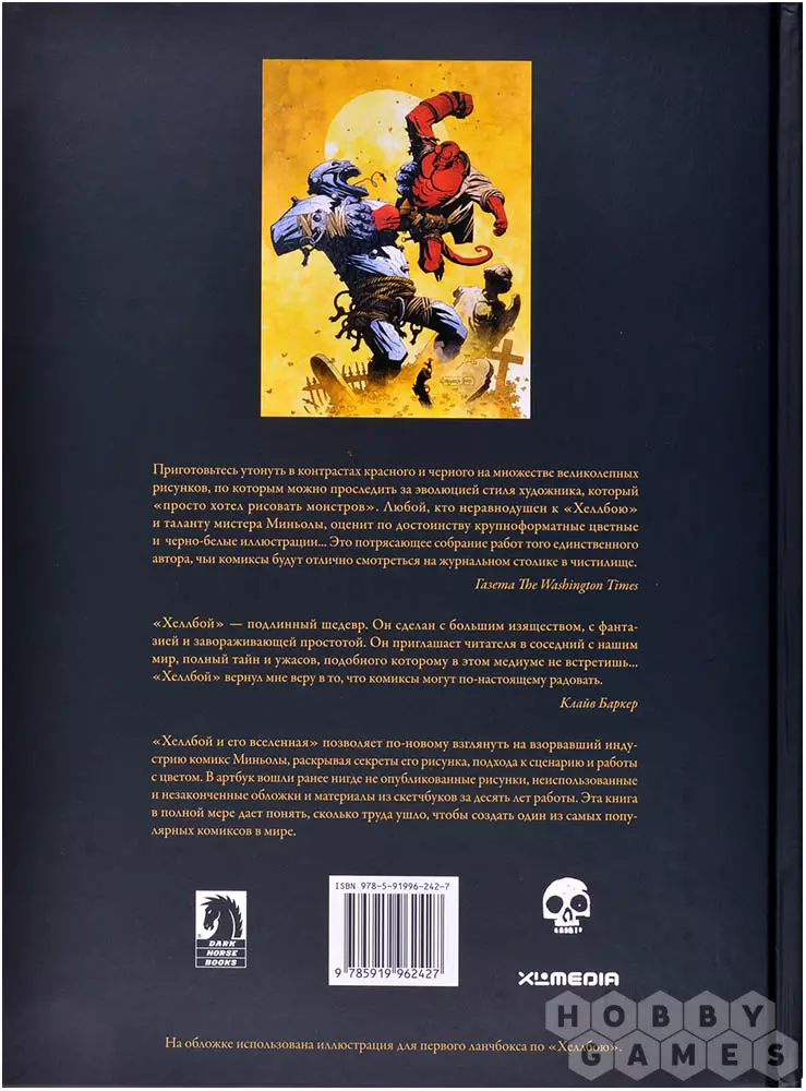 В данной книге собрано множество работ по вселенной “Хеллбоя”, часть из которых даже не было опубликована прежде. Здесь и разнообразные наброски (как цветные, так и чёрно-белые), и незаконченные работы, и кадры из комиксов, и прототипы обложек.