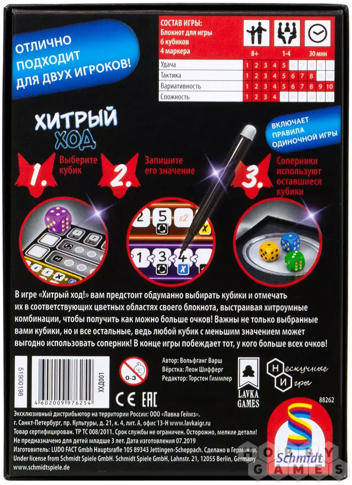 Андрей11.10.2021 12:15Забавная игра. Кто-то въезжает в правила быстрее, кому-то даже после 3 партий даëтся с трудом. Большой плюс, что есть соло-режим