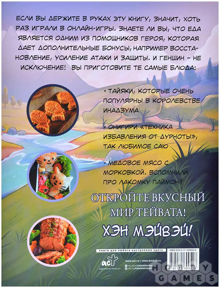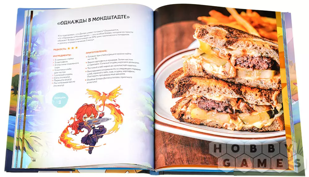Эта кулинарная книга станет ключом ко вкусам мира Тэйвата, в котором каждое блюдо становится неотъемлемой частью приключений героев. Каждое блюдо этой книги, от лакомства Паймона до предпочтений Саю – очередной кулинарный шедевр, который принесёт вам не только вкусовое удовольствие, но и эстетическое! К каждому рецепту идёт изображение готового блюда, список необходимых ингредиентов (не переживайте, все из них можно найти на полках обычного продуктового) и иллюстрации с вашими любимыми персонажами!