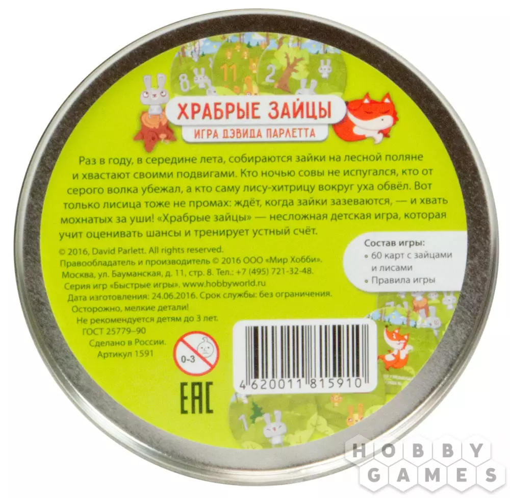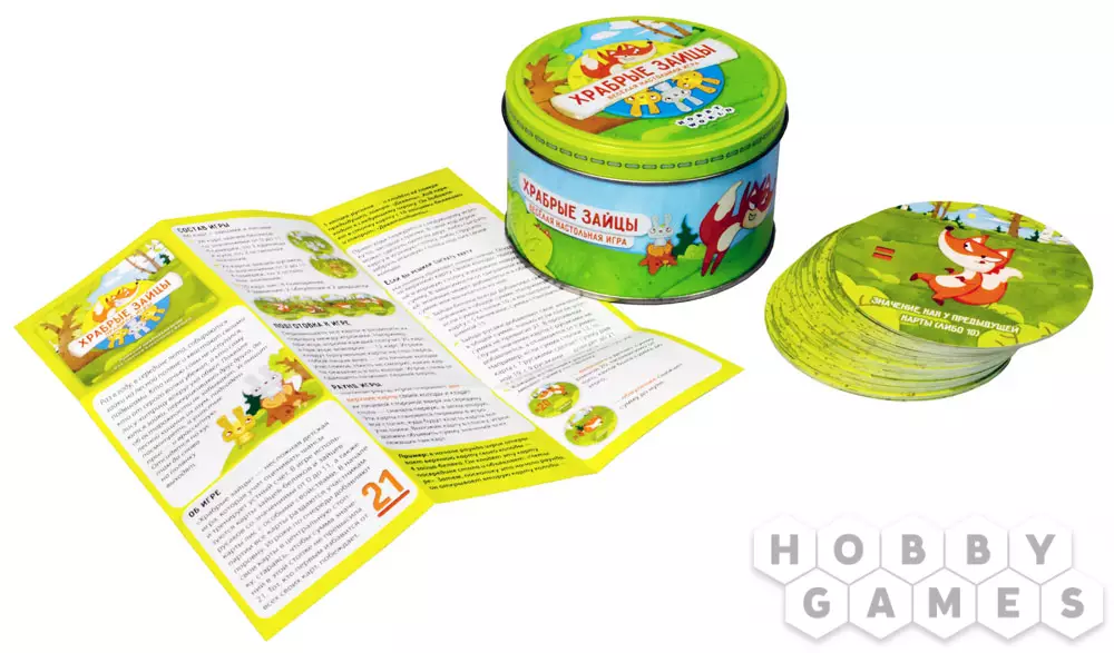 Детская настольная игра "Храбрые зайцы" в простой и увлекательной форме научит детей не только считать, но и оценивать риски и вероятности. Счёт в игре ведётся с помощью карт с номиналом от 0 до 11, при этом присутствуют действия сложения, вычитания и умножения на два. В игре простые правила, очень милый дизайн зверей, приятная цветовая гамма – всё, чтобы и детям, и родителям было интересно и удобно играть.
