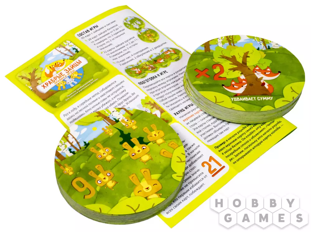 Эти простые правила и разнообразие карт с различными номиналами отлично разовьёт у ребёнка навыки счёта, при это сам игровой процесс очень увлекательный, ведь вам ещё предстоит продумывать, стоит ли рисковать и пробовать выложить карту или же спасовать, и если да, то в какой момент? Зная общее количество карт, можно просчитывать вероятность вытащить, например, зайца-русака и не выйти за пределы 21 очка.