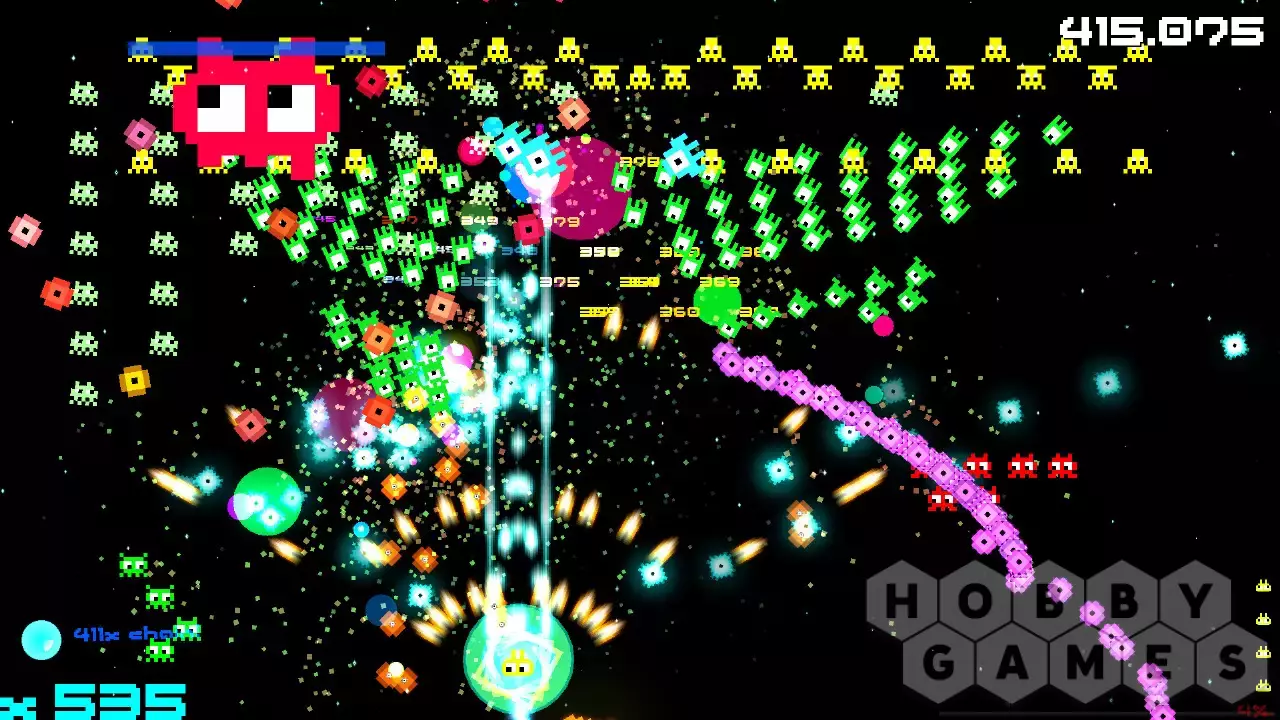 - Синхронизированный с темпом игровой процесс (движение захватчика, схемы пуль и многое другое активируются в такт ударам)