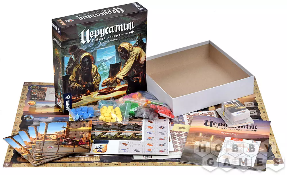 "Иерусалим: Тайная вечеря" – это стратегическая игра о гонке за место на Тайной вечере. Необычный сеттинг, глубина решений и напряжённая динамика переносят игроков на 2000 лет назад.