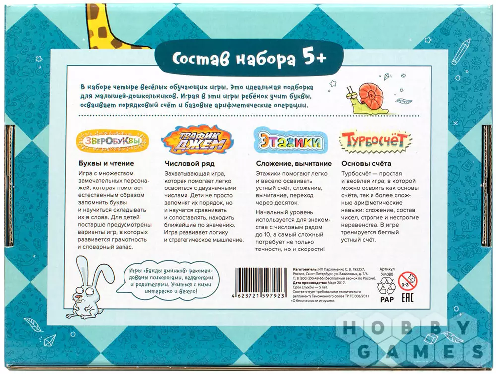 Набор игр "Игротека 5+" создан для ребят, которые хотят научиться считать и читать. Он станет идеальным подарком для дошкольников и первоклассников.