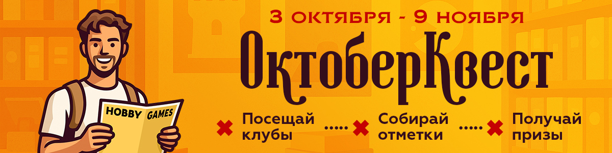 Друзья, запасайтесь желанием играть и хорошим настроением – в Hobby Games стартует грандиозный ОктоберКвест! Это целый месяц уникальных ивентов, живого общения и, конечно, щедрых наград для самых активных посетителей наших клубов. Мы подготовили для вас настоящий игровой марафон, где каждый визит в магазин – это новый уровень и шаг к заслуженному призу.