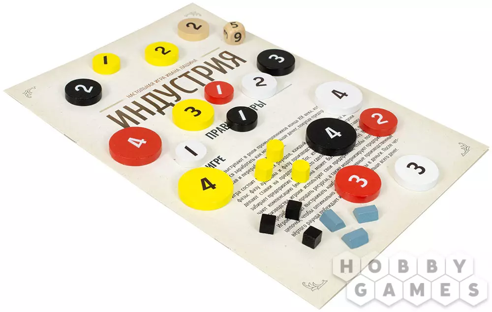 "Индустрия" – это увлекательная экономическая настольная игра, построенная на оригинальной механике аукциона. В рамках каждого хода участникам игры предстоит участвовать в торгах, делая ставки на разные производственные сооружения. Победитель аукциона в рамках хода получает в своё распоряжение предприятие, а остальные игроки – компенсацию. Находящиеся в распоряжении игроков промышленные здания позволяют перерабатывать и продавать ресурсы. Таким образом, каждый из участвующих в игре "магнатов" зарабатывает деньги, модернизирует предприятия и выстраивает эффективные производственные цепочки, стремясь получить статус самого богатого промышленника.