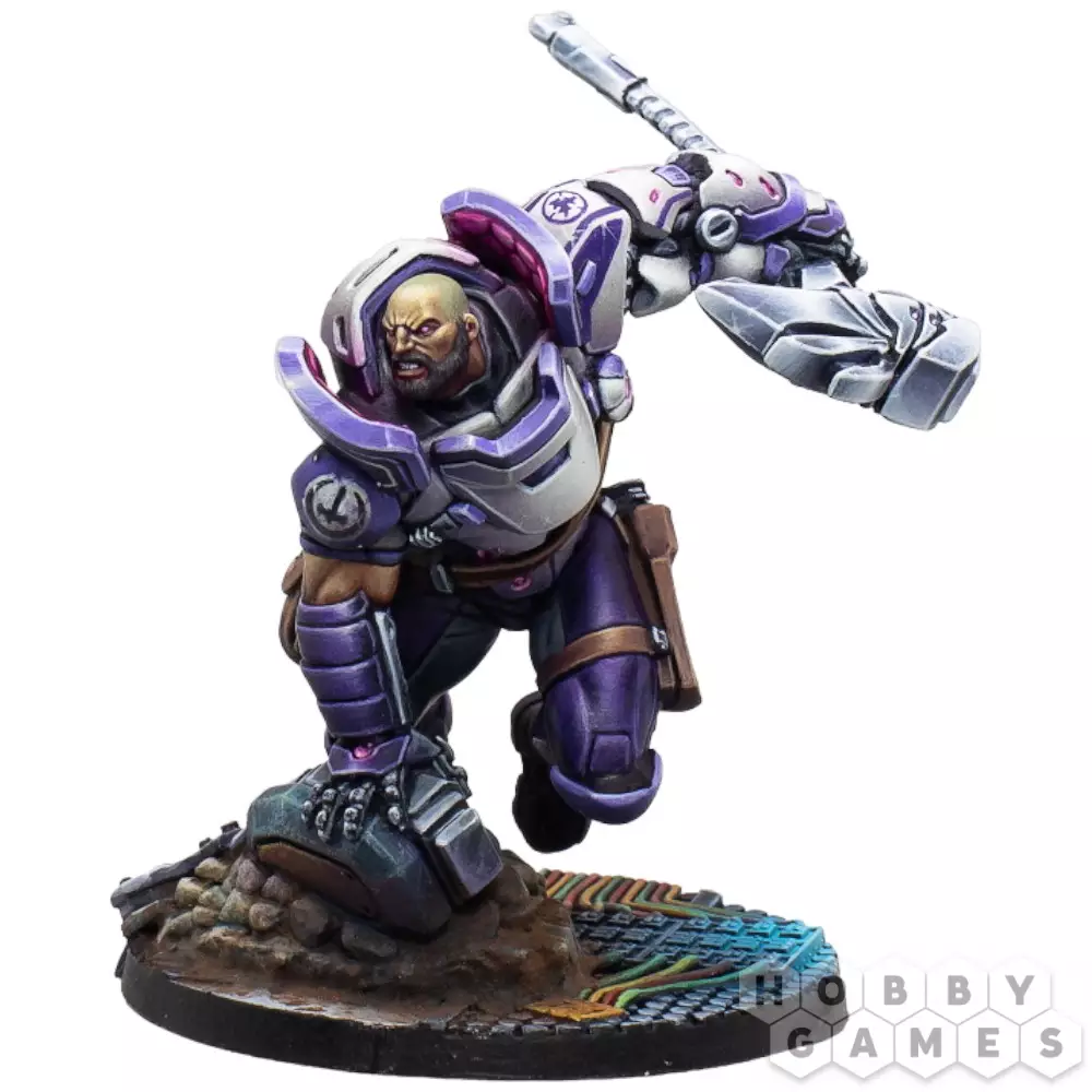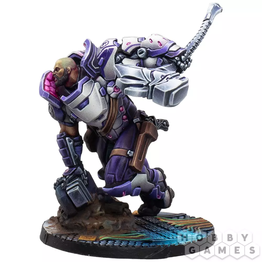 В эту коробку входит миниатюра Ajax the Great, изготовленная из термопластика. Если вам нужна необузданная грубая сила, не раздумывайте дважды и включите Ajax в свой набор ALEPH Steel Phalanx Sectorial Pack. Ни один противник не сможет противостоять мощному удару его молота!