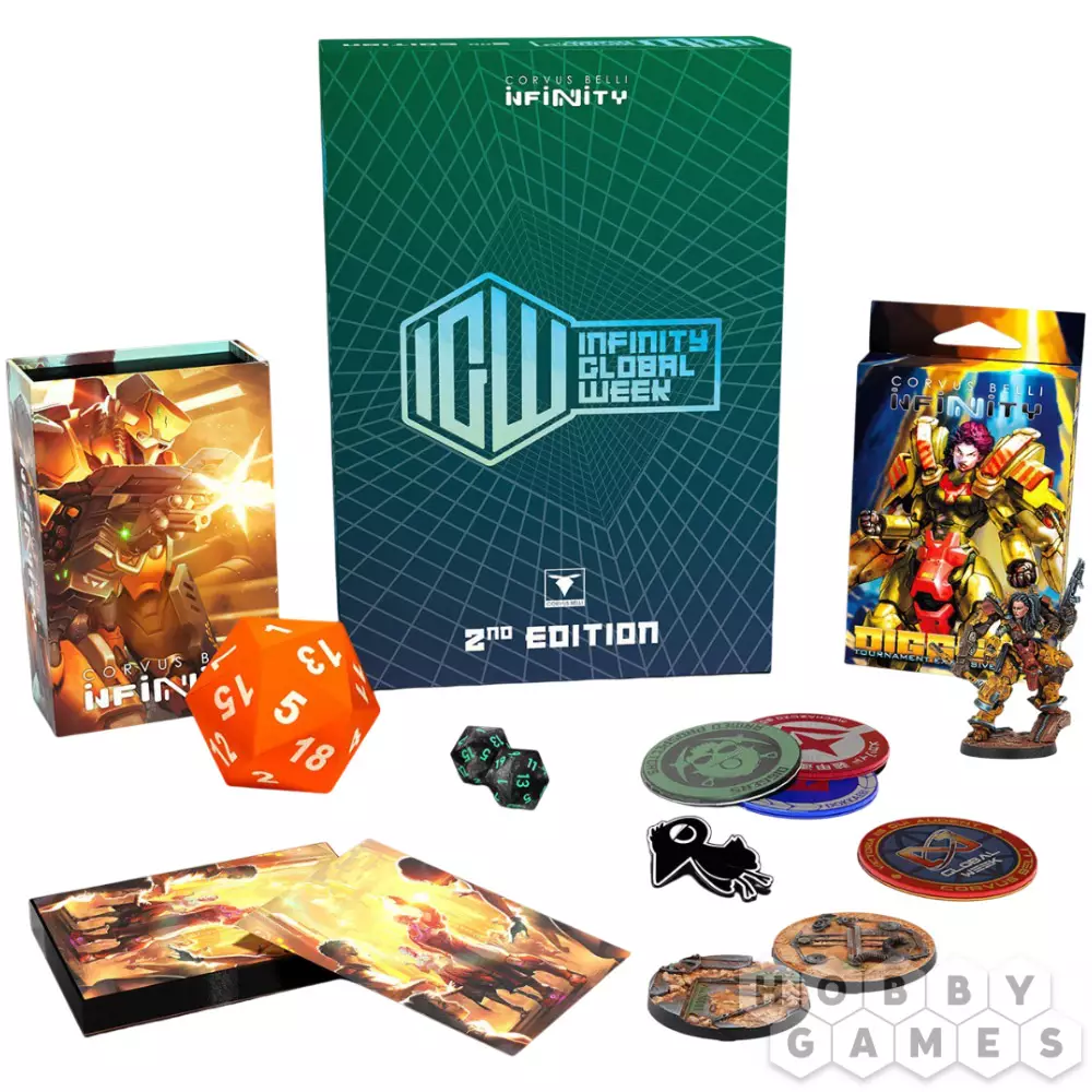 Эксклюзивный набор Infinity Global Week 2nd Edition создан специально для поклонников фантастической вселенной. Используйте его, чтобы провести собственный турнир, сыграть миссию-другую в компании друзей или потренироваться в покраске миниатюр. Внутри вы найдёте уникальную героиню Diggers, комплект особых кубиков d20 (включая большой дайс-антистресс) и другие тематические аксессуары – от протекторов для карт до текстурированных баз для миниатюр. Кроме того, в комплект входят несколько патчей и эмалевый значок, благодаря которым вы сможете поднять свои повседневные образы на новый уровнь. Данный набор создан для того, чтобы исследовать бесконечные возможности Infinity – играйте, тестируйте, экспериментируйте!