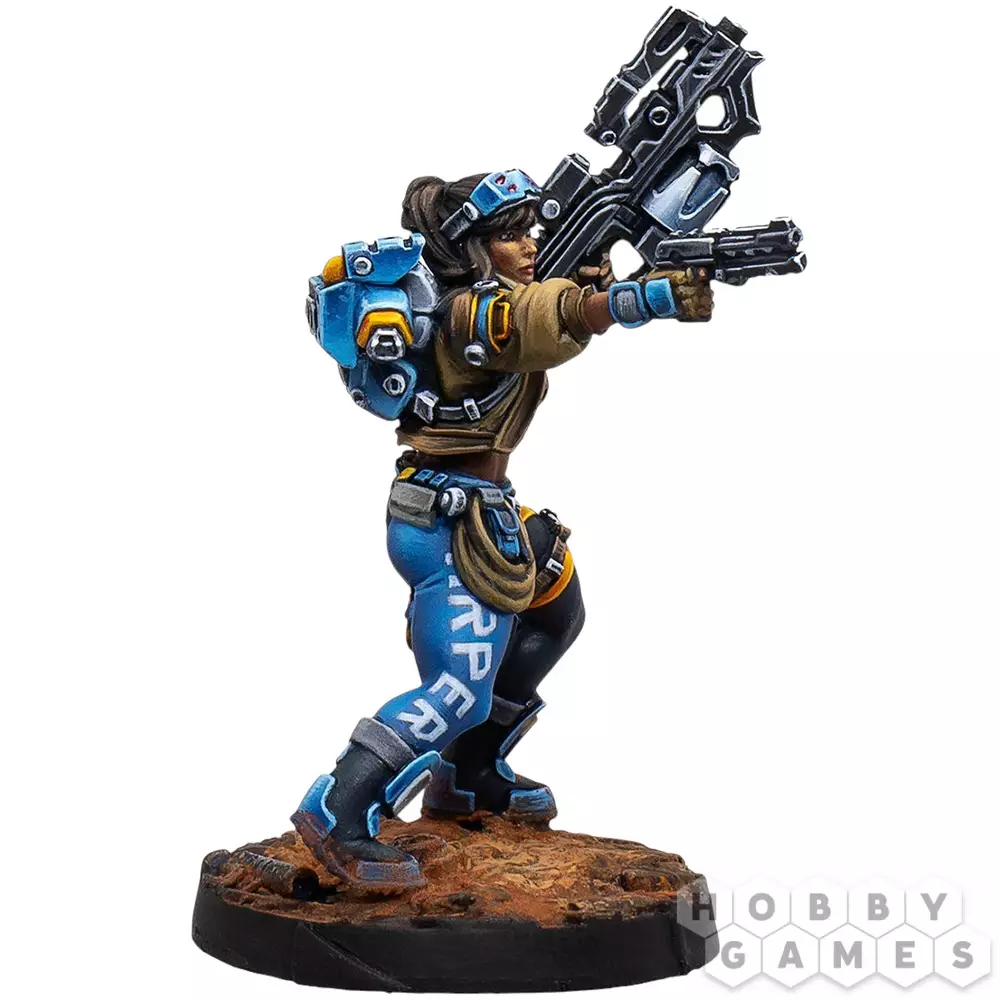 Dr. Priya Harper с Plasma Carbine – это многофункциональный специалист, которого вам непременно захочется включить в свою армию PanOceania из набора Operation: Sandtrap.