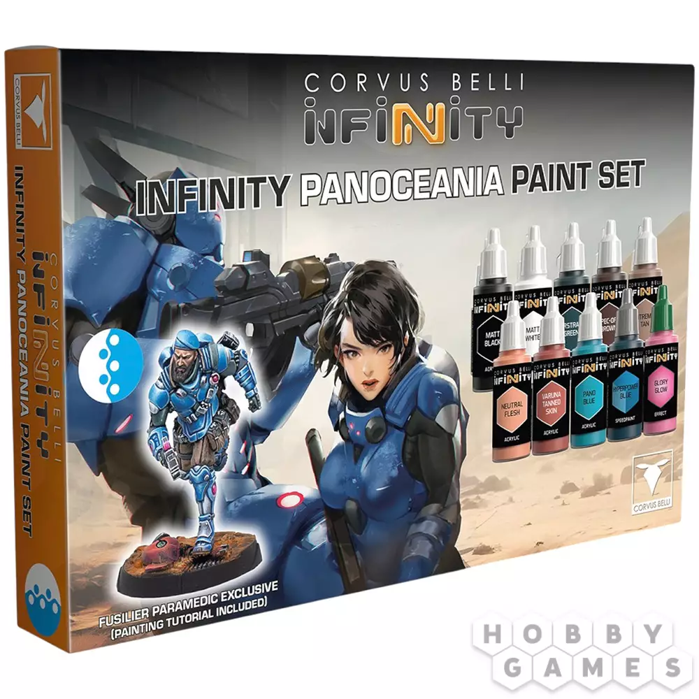 Этот набор позволит вам использовать все необходимые цвета для раскрашивания моделей, принадлежащих фракции PanOceania. Внутри вы найдёте 10 красок, которые понадобятся вам для придания своим миниатюрам фирменного цвета фракции, а также эксклюзивную миниатюру Fusilier Paramedic, которой нет нигде, кроме этого набора. Вы также найдете 10 цветов, которые понадобятся вам для раскрашивания вашей армии PanOceania.