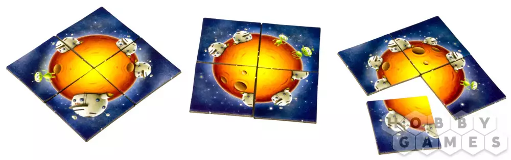 Квадраты складываются вместе до четырёх штук, образуя единую картинку планеты. Задача игроков заключается в том, чтобы исследовать как можно больше планет и построить на них станции. Чтобы дополнить уже открытую планету станцией, вам необходимо определённое количество космонавтов.