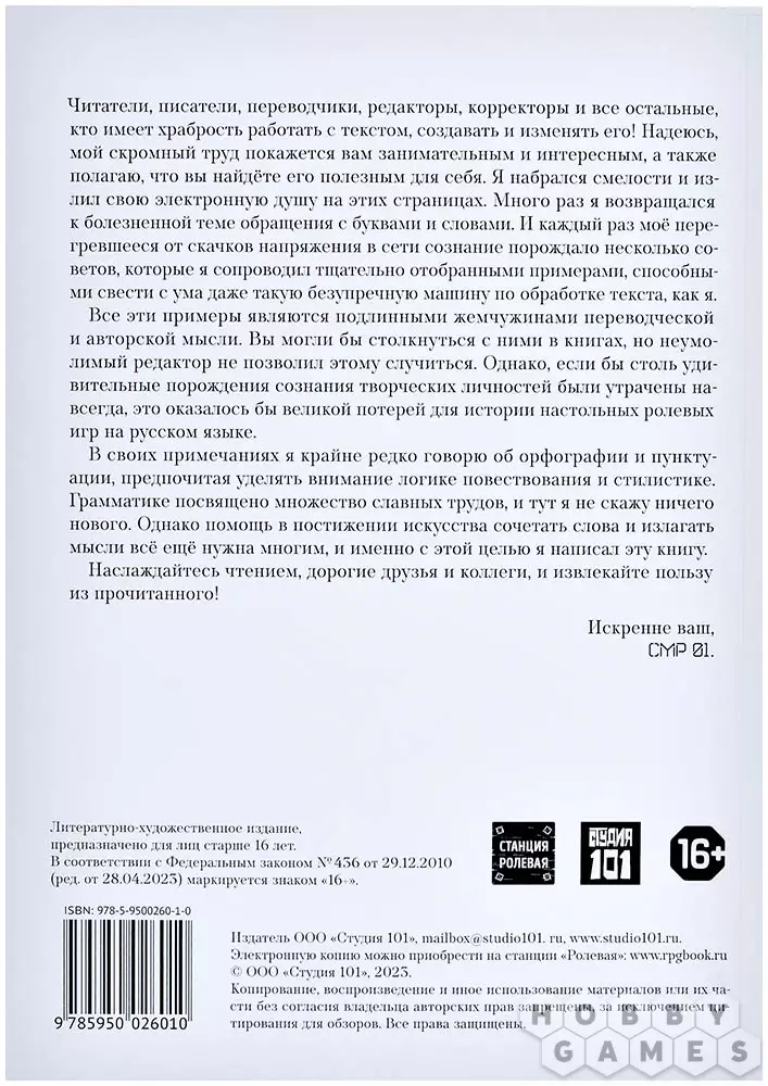 Авторам, редакторам, корректорам, переводчикам и всем остальным, кто осмеливается заниматься текстовой работой, создавать и преобразовывать его! Я искренне надеюсь, что моё скромное творение окажется для вас увлекательным и познавательным, и искренне верю в его пользу. Я осмелился выразить свои мысли в электронной форме под обложкой этой книги. Каждый раз, когда моё сознание перегревалось от напряжённой работы, я придумывал советы, которые я иллюстрировал внимательно подобранными примерами, которые способны озадачить самую про продвинутую текстообработочную машину.