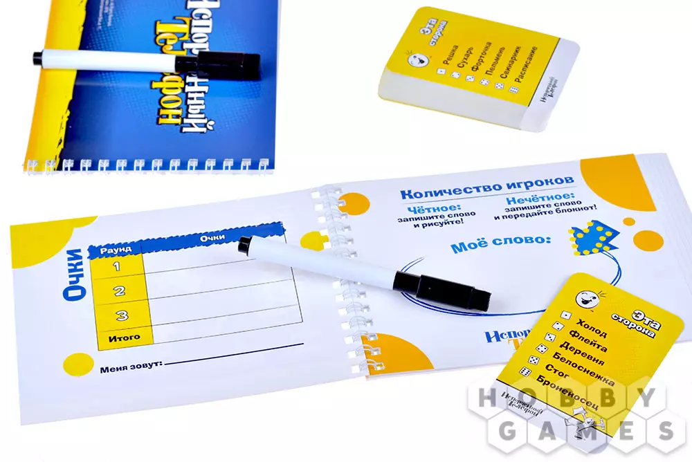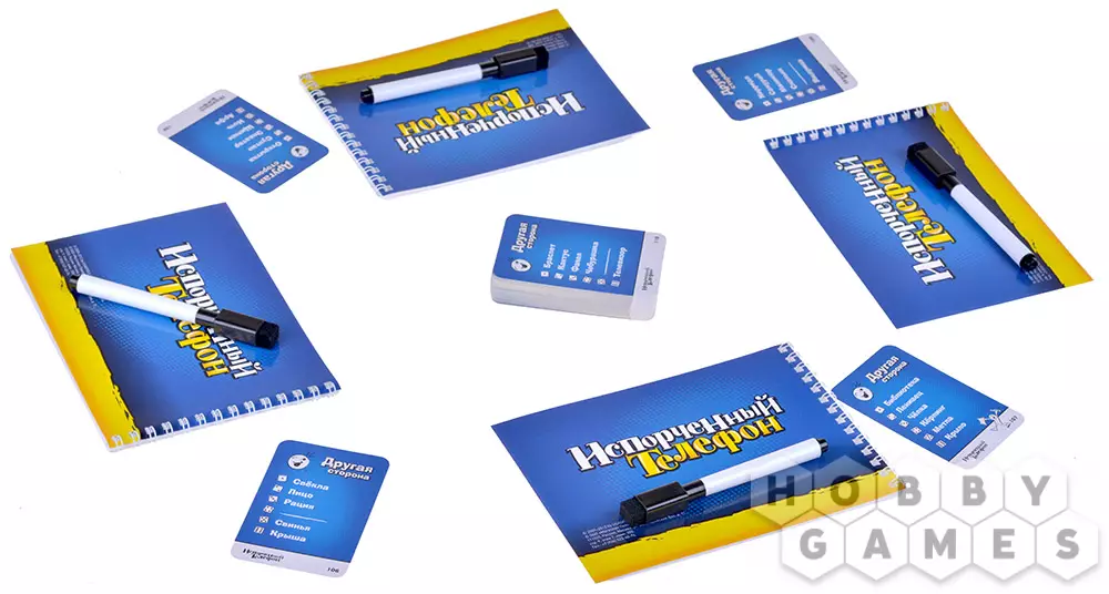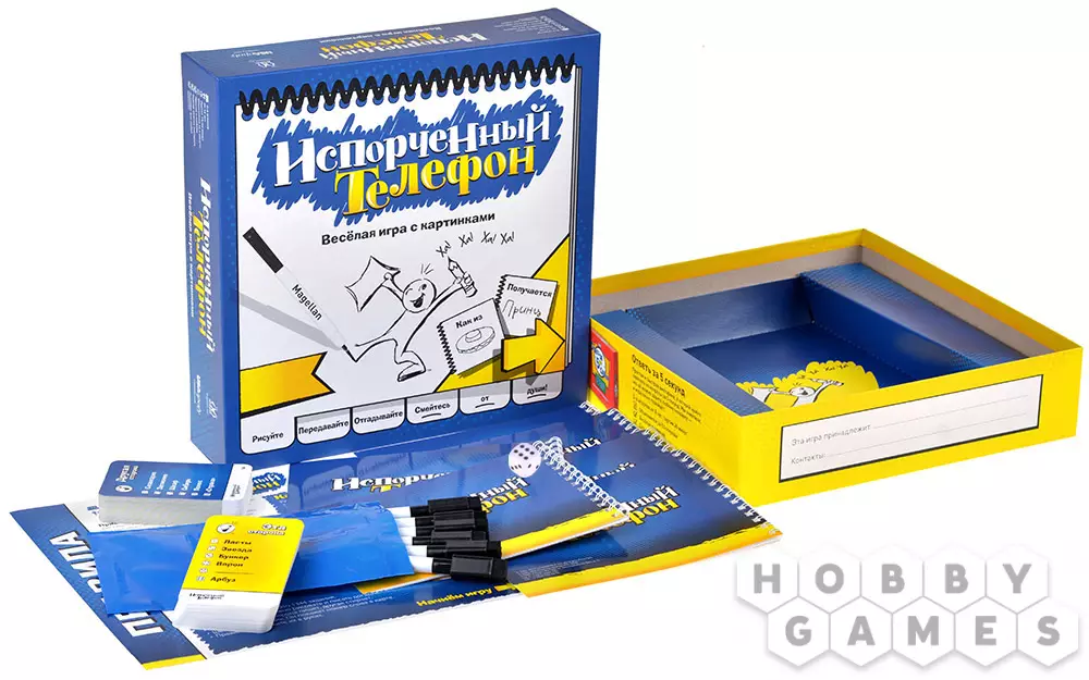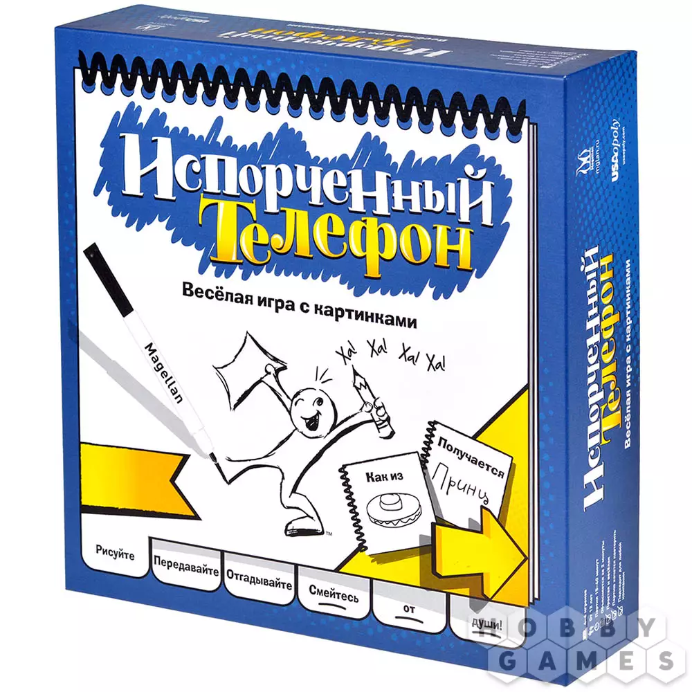 Настольная игра "Испорченный телефон" добавляет в оригинальную концепцию щепотку артистизма, чтобы передать слово от игрока к игроку, нужно рисовать! Даже самые внимательные игроки могут споткнуться на умении оперировать образами и рисовать. Впрочем, слова подобраны так, чтобы предполагать множество разночтений.