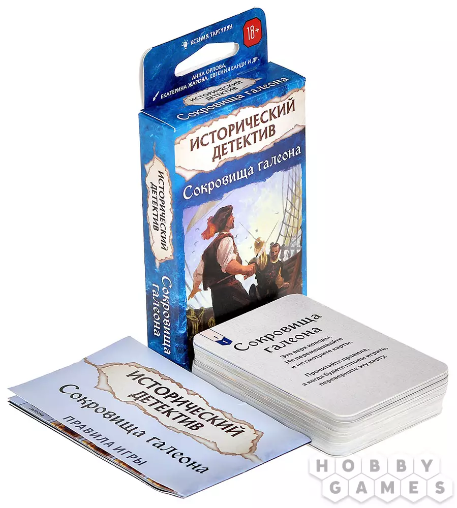 "Сокровища галеона" – настольный детектив с атмосферой исторического приключения, где вы расследуете кражу на борту испанского галеона. Игра рассчитана на компанию от одного до четырёх игроков. В вашем распоряжении тринадцать колод карт, каждая из которых раскрывает новые улики, диалоги с персонажами и детали обстановки. Уникальность игры – в её визуальной составляющей: иллюстрации полны скрытых подсказок, а эмоции персонажей помогают понять, кто лжёт. Механика действий добавляет напряжённости – каждое решение должно быть взвешенным. Вы будете разгадывать тайну, переворачивая карты, но будьте внимательны: некоторые из них требуют затраты действий, а другие открываются бесплатно. В конце игры вас ждёт финальный тест – сканирование QR-кода с вопросами, где вы проверите свою интуицию и логику.