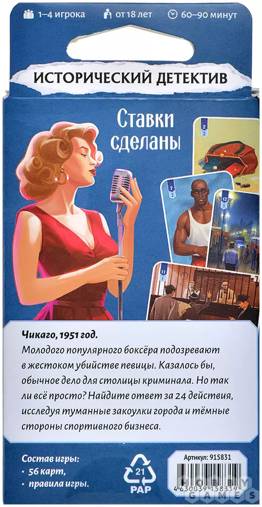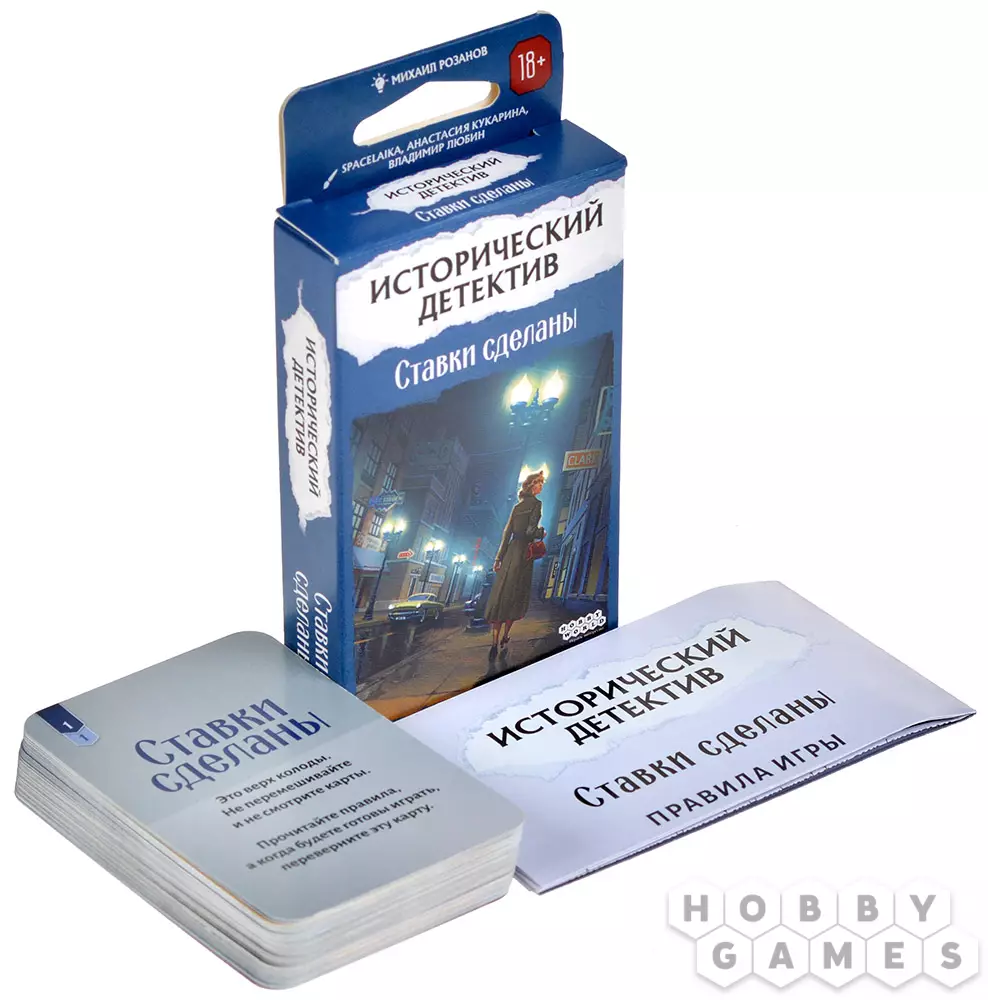 В игре "Исторический детектив: Ставки сделаны" игроки берут на себя роли сыщиков, которым было поручено расследовать это нелёгкое дело. Для проведения партии понадобится мобильный телефон с функцией чтения QR-кодов – это необходимо, чтобы в финале определить, насколько ваши догадки близки к истине.