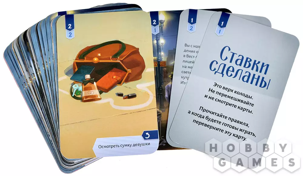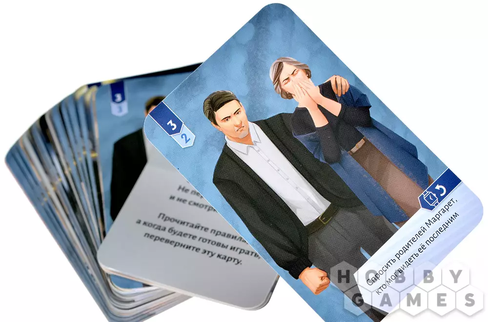 С обратной стороны может содержаться как просто информация, так и нечто большее – например, карта может предписать вам открыть новую колоду, что расширит спектр действий сыщиков. Особое внимание следует обратить на иллюстрации – на них также могут находиться улики! Мимика и эмоции допрашиваемого, небольшие детали окружения – даже на первый взгляд незначительный элемент может привести к разгадке.