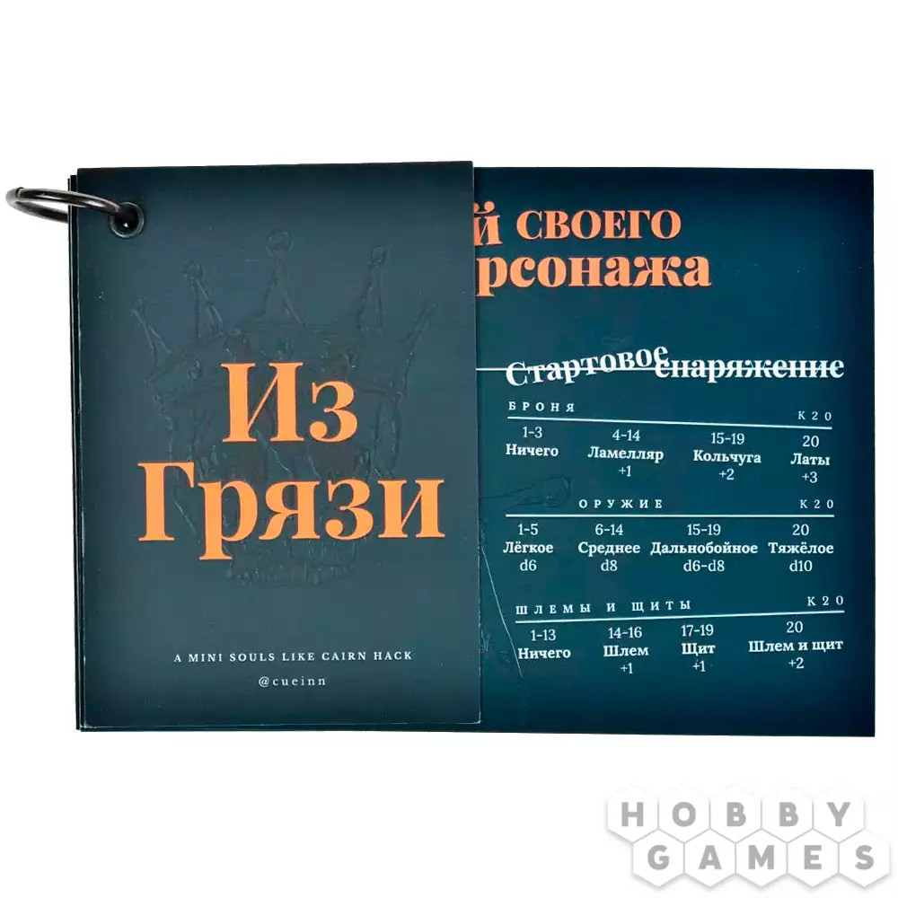 "Из Грязи" – это настольная ролевая игра в стиле souls-like, в которой вы, игроки, примерите роль – представьте только! – нежити. Буквально не-жити. На момент начала игры ваши персонажи уже погибли от рук тирана, но вы восстали из мёртвых и теперь решительно настроены отомстить и свергнуть злодея. Однако ваше новое состояние наложило на вас отпечаток: теперь вас удивительным образом тянет к сырому мясу, части тела требуют периодических ремонта и замены, а в душе поселилась какая-то... порочность. Но да это всё лирика – главное, что ваши цели благородны и вы полны решимость свершить справедливость! Ведь так?..