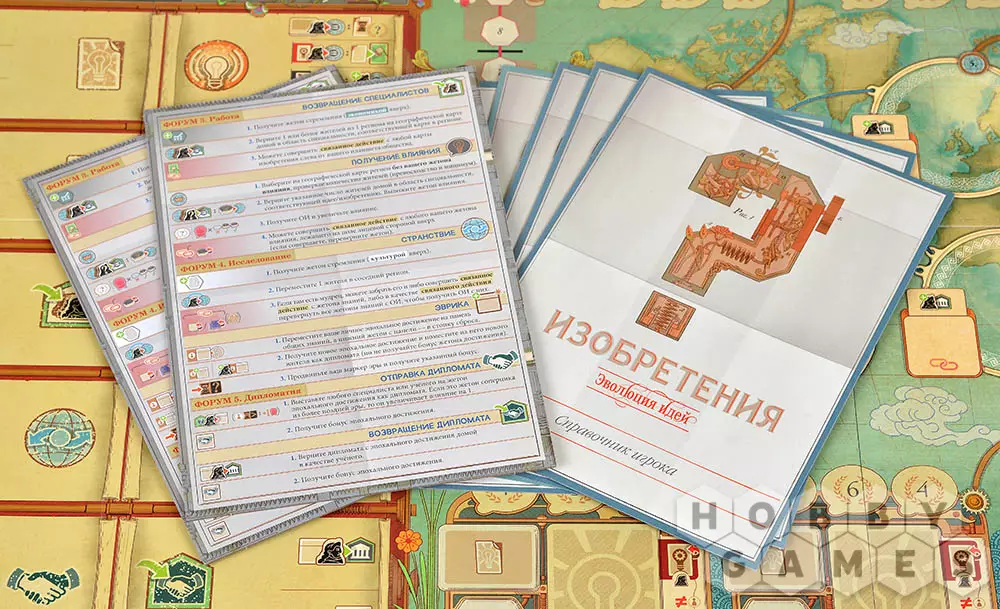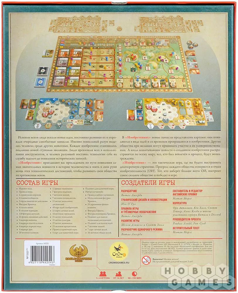 "Изобретения. Эволюция идей" – это стратегическая хардкорная игра, где вы становитесь двигателем прогресса. Вам предстоит собирать карты идей, превращать их в революционные изобретения и распространять свои открытия по континентам. Чем лучше мир принимает ваши технологии, тем больше очков изобретательности вы получаете. Но будьте готовы к конкуренции – другие игроки будут продвигать собственные разработки, и они не намерены покорно отдавать пальму первенства! В этой настолке важно всё: и тактические ходы в текущем раунде, и выверенная стратегия на всю игру. Победит тот, чьи открытия окажутся наиболее влиятельными и изменят ход истории. Готовы ли вы переписать учебники науки и техники?