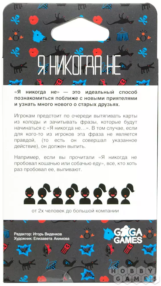 Вечеринка в разгаре, гости уже разогрелись, самое время познакомиться всем поближе, даже если вся честная компания знает друг друга уже не первый год! Садимся за стол, готовим "реквизит" – рюмки, бокалы, стаканы и т. п., ну и то, что будет наливаться в эти ёмкости. Далее открываем коробочку с настольной игрой "Я никогда не", ну, и погнали!