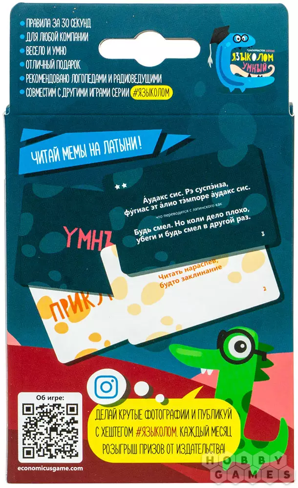 В этой игре вам встретятся и фразочки, заимствованные из латыни, и малоизвестные, но достаточно смешные цитаты, и даже новомодные мемы. Все они записаны нетривиальным образом, кроме того для всех них имеются разнообразные правила произношения. Эта настольная забава абсолютно точно доставит вам удовольствие и незабываемое веселье при игре как в компании, так и в семейном кругу. Все входящие в комплект карты можно смешивать с другими играми серии.