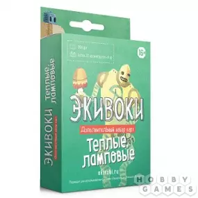 "Экивоки. Теплые, ламповые" созданы для того, чтобы объединить за игровым столом людей разных поколений. Это дополнительный набор содержит 80 новых карт с темами "Брежнев-стайл", "1980-е", "1990-е", "2000-е". На карточках собраны самые весёлые и знаковые словечки и фразы последних 50 лет: от лунохода до смартфона, от "Служебного романа" до "Аватара", от хиппи до хипстеров.
