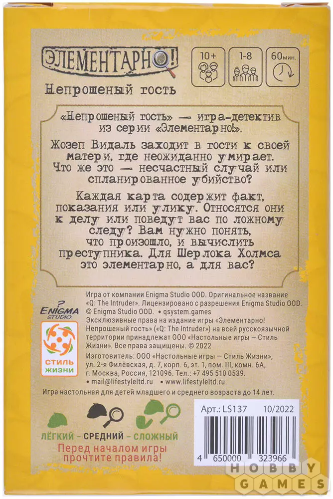 Хотите почувствовать себя в роли настоящего детектива? Это "Элементарно"! В этой кооперативной детективной игре вы можете почувствовать себя настоящим сыщиком – изучать улики и показания. Вам придётся анализировать факты и оценивать действительно ли они имеют отношение к делу или ведут вас по ложному следу, подтверждая ошибочные теории?