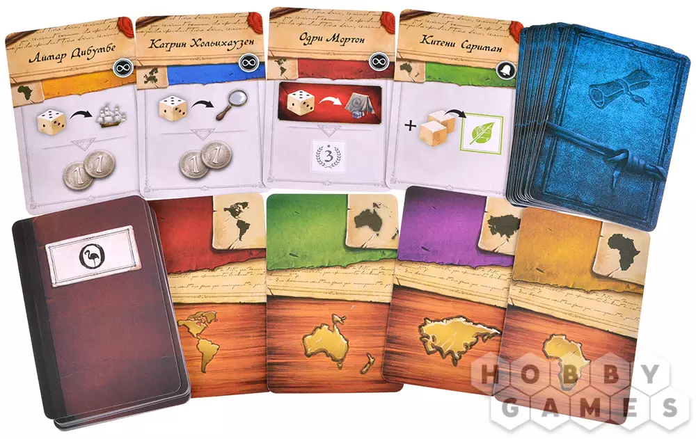 И вот вы определили цель своего путешествия, теперь пора понаблюдать за животными в их естественной среде обитания. На карте животных обозначены части света, в которых они обитают, следовательно, туда вам и нужно отправляться. Для этого разместите в зону экспедиции кубик того же цвета, что и необходимая часть света. Нет нужного цвета? Не проблема: жетоны экспедиции, полученные в посольстве, позволят вам поменять цвет кубика на необходимый. Значение кубика при этом может быть любое, но чем оно выше, тем больше исследований вы сможете провести, если в этой части света обитает несколько животных из вашей коллекции.