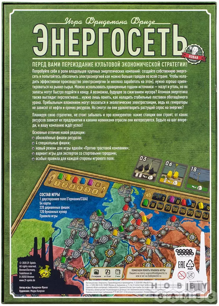 Игра заслуженно занимает лидирующие позиции в мировых рейтингах настольных игр. "Энергосеть" – одна из лучших представителей серьёзных экономических стратегий.