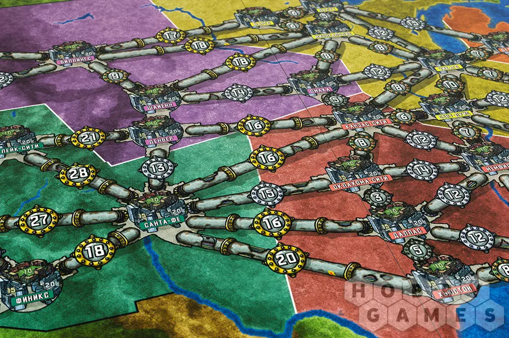 Вот тут и кроется нюанс – победителем не всегда становится тот, кто подключил финальный город, так как на последнем этапе проверяется, сколько городов питает ваша сеть и побеждает тот, кто снабдил электричеством наибольшее количество городов. При ничьей побеждает тот, у кого осталось больше всего денег.