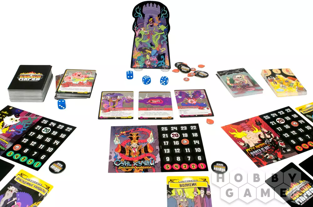 id18231823117.02.2019 11:10Здравствуйте! Игра отличная, даже двум игрокам можно неплохо повеселиться. Возникла пара вопросов по поводу механики. 1. Текст карты "От Труполюба" гласит: "Захвати замок. Слей 1 литр крови: нанеси 2 урона каждому врагу за каждую медаль недобитого колдуна в игре". Значит ли это, что отдав 1 литр крови я нанесу каждому игроку урон, равный общему количеству медалей недобитого колдуна умноженному на два или же каждый враг с медалью недобитого колдуна получит два урона. Возникли споры, но я лично я склоняюсь к первому варианту, хоть и за 1 литр крови, особенно при большом количестве игроков, выглядит немного имбово. 2. Если я добавляю в заклинание новые карты, например, "От Вшивы" (с замком можно добавить 2 карты с руки к заклинанию), то будут ли учитываться знаки на добавленных картах при выполнении могучего броска? В теории можно сделать бросок и с 6 кубиками, выходит.