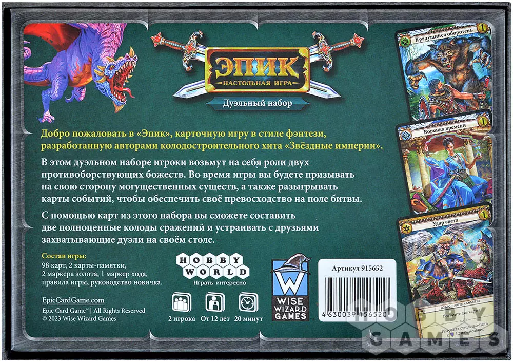 05.10.2023 18:53Здравствуйте, Максим! Отличие и причина по которой меньше карт в том, что это дуэльный набор заточенный под двоих, в то время как оригинальная EPIC позволяет играть от 2 до 4 человек.