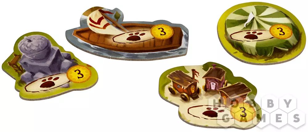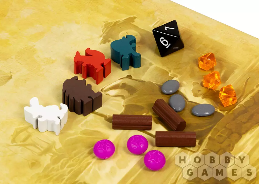 - 105 фишек ресурсов: ягод, веток, смолы и камушков