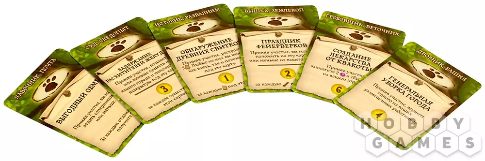 07.06.2023 20:58Здравствуйте! Поставив своего работника на данное событие ( предварительно имея в своем городе барахольщика и лавку) игрок может положить на это событие от 1 до 3 ресурсов в любом сочетании, при учете, что каждая ягодка и веточка принесут 1ПО, а каждая смола и камень = 2ПО. Выложить ресурсы игрок может только при взятии карты и в другие сезоны или моменты хода повторить событие невозможно, в конце игры при подсчете ПО карта принесет очки в зависимости от лежащих на ней ресурсов.
