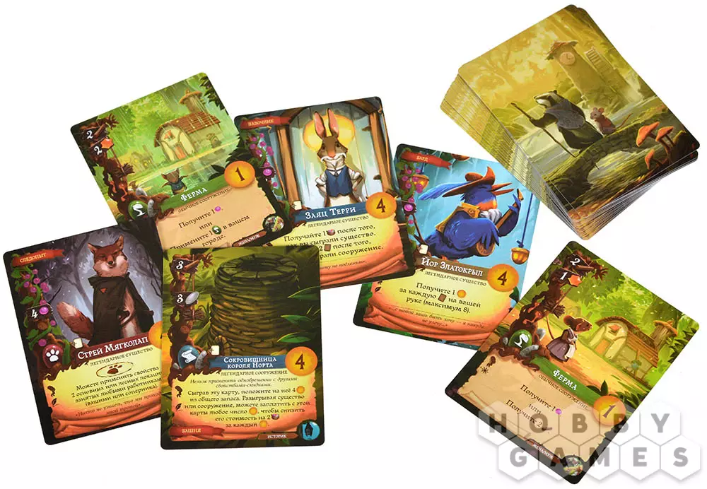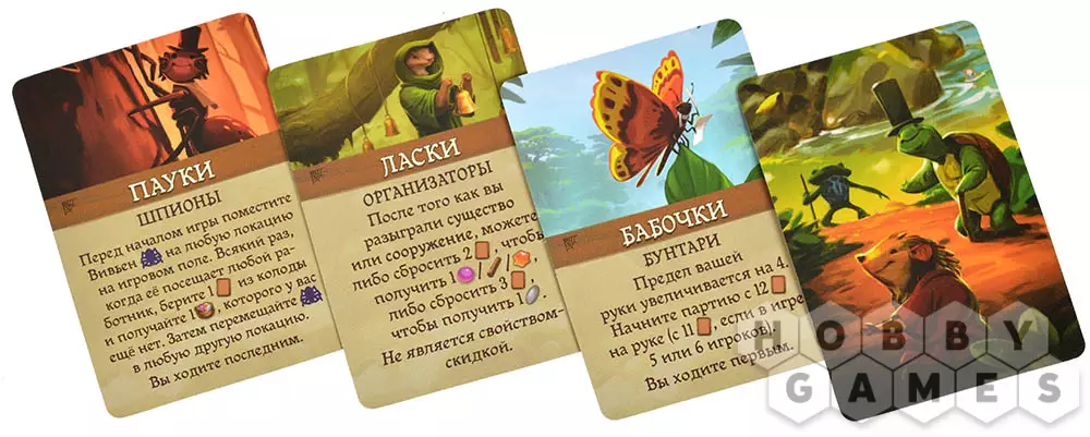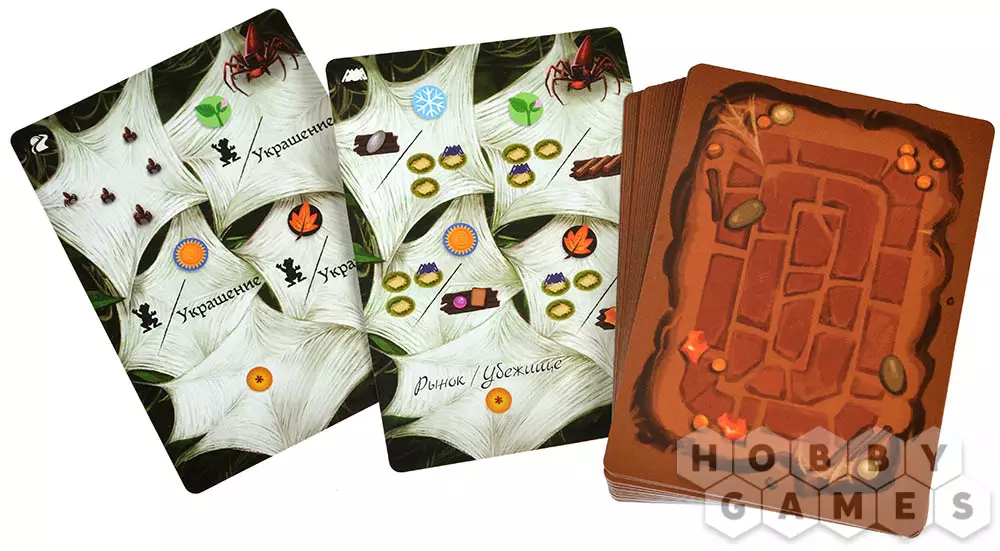 Размер карт: 44x63 мм (рекомендуются протекторы из данного раздела, 4 шт.)