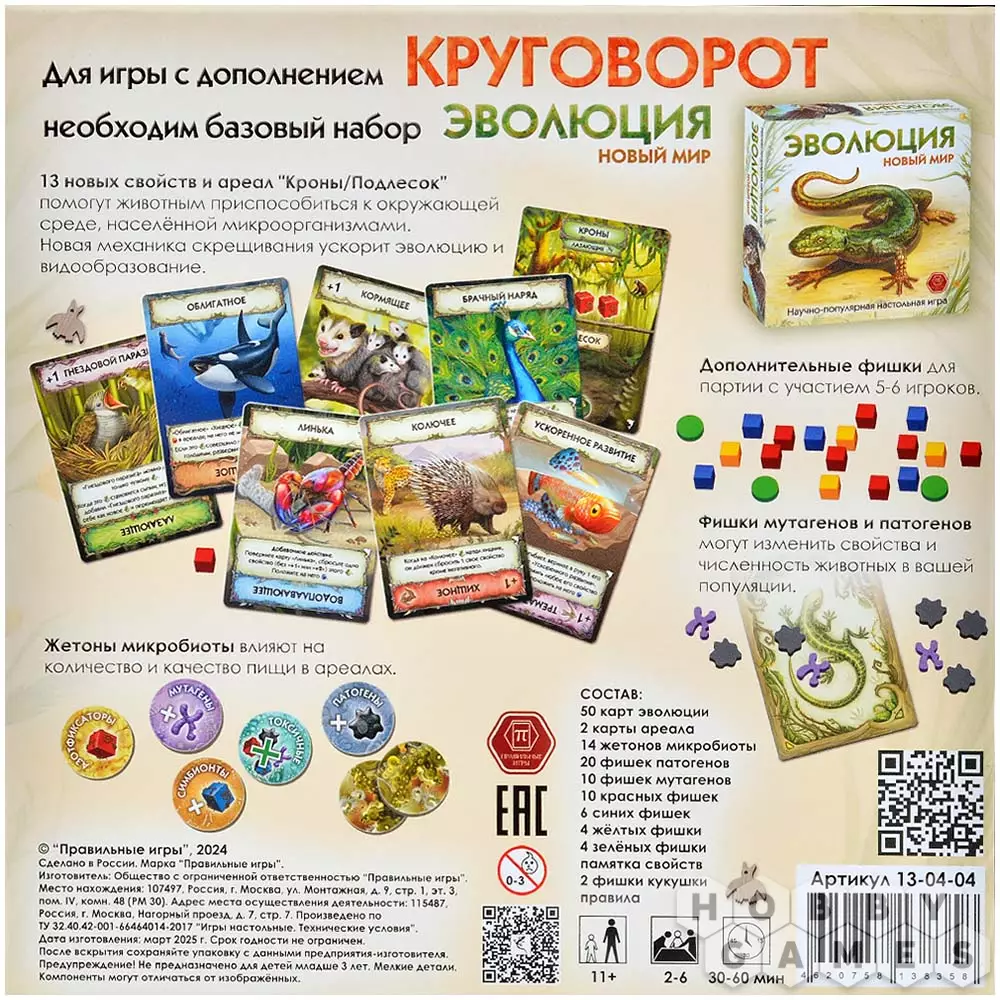 Внимание! Это дополнение. Для игры вам потребуется базовая версия "Эволюция: Новый мир". Также обратите внимание, что игра полностью совместима с "Эволюция: Новый мир. Эффект бабочки" и "Эволюция: Метаморфозы" из той же серии.