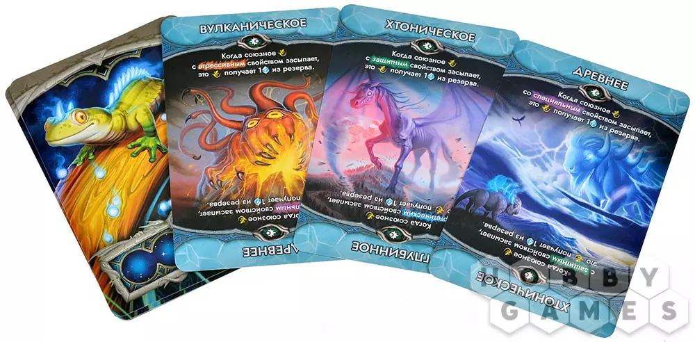 Бестии – в этом наборе карт вас ждёт пятёрка магических персонажей: Одержимое, Протобестия, Фэйри, Хронофаг и Щедрое. Эти создания, сотканные из самой магии, обладают определёнными способностями, расширяющими ваши игровые тактические возможности.