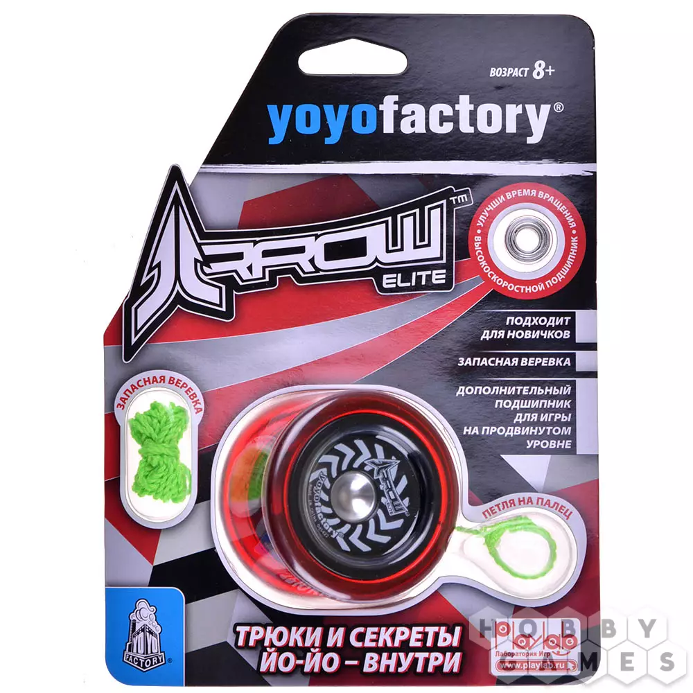 Команда YoYoFactory производит высококачественные профессиональные йо-йо для чемпионатов, и известна ими по всему миру. Серия Arrow Elite обладает классическим узнаваемым дизайном, а также запасной верёвкой и дополнительным высокоскоростным подшипником. Внутри упаковки также содержится вкладыш с описанием тонкостей управления йо-йо!
